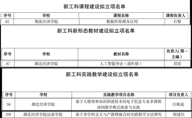 本网讯(通讯员:吕植成)近日,湖北省教育厅高等教育处正式公示了2024年度新工科建设项目拟立项名单,我们凭借卓越的教育创新能力和扎实的学科建设基础,共有四个项目成功入选,标志着我们在新工科建设领域取得了显著进展。